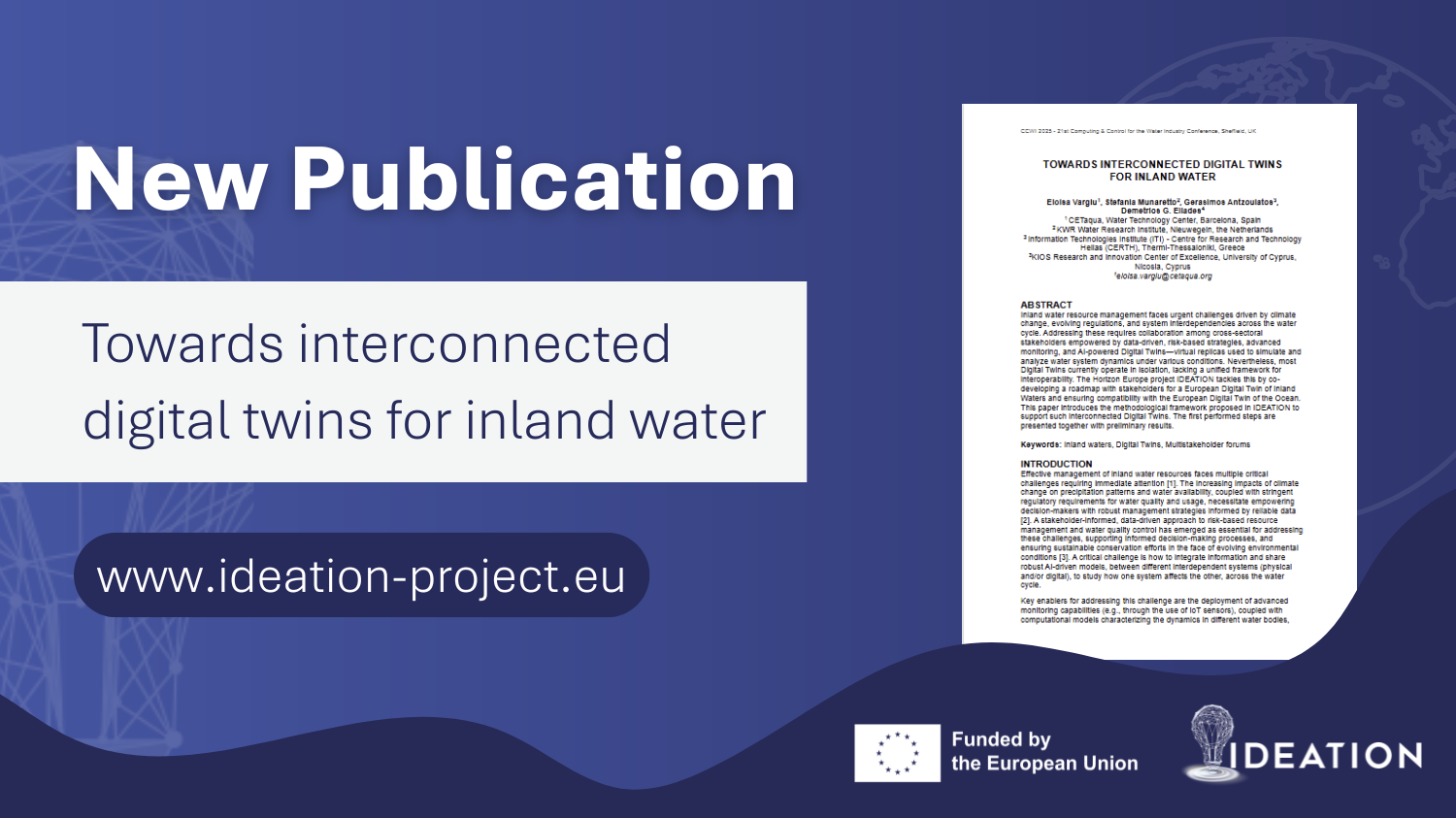 IDEATION is an EU-funded project focused on creating a Digital Twin Ocean (DTO) of inland waters, linking rivers, lakes, and wetlands with the ocean. The project’s success depends on the collaboration of an experienced consortium of 11 European partners.
